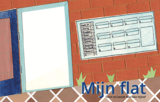 Marieke: “Ik maakte ‘Mijn flat’ een jaar of tien geleden als inzending voor een schrijfwedstrijd over Utrecht met als achterliggend idee een positief beeld neer te zetten van wonen in een flatwijk. kreeg de kopij onbeoordeeld terug; de wedstrijd was bedoeld voor “volwassen werken”. Ik heb het toen weggelegd met het idee er iets mee te gaan doen als er een kinderboekenweekthema kwam dat zich daarvoor leende: dat is dit jaar.”